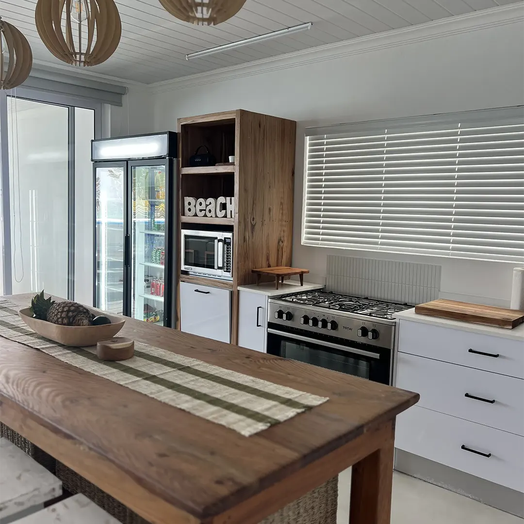 THESE ELEGANT WHITE BEACH HOUSES each feature 6 spacious en-suite rooms, a large open-plan kitchen & living area that flows seamlessly into an expansive veranda with an additional outdoor lounge & generous dining space.