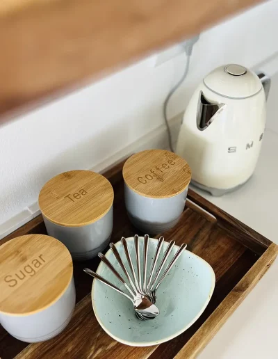 - A cleaner comes every morning at 8:00 to do dishes and clean – tips are welcome.